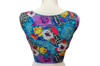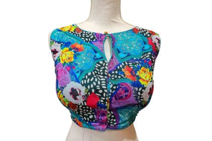 Be the first to review “Blue Multi Color Organza Strapless Blouse”
