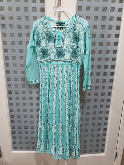 This is a White & Red Color Jamdani Kurti Set. It is U-Neckline in Frontside & High Neckline in Backside. This Kurti is 3/4 Sleeve and Knee Length.