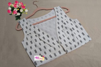 White & Black Cotton Ikkat Printed Blouse