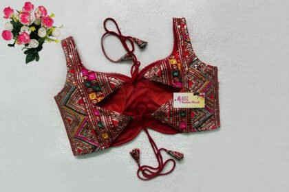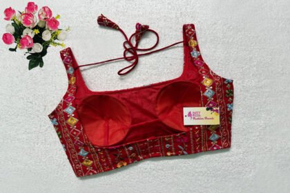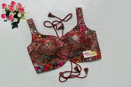 Red Multi Color Georgette Embroidered Blouse
