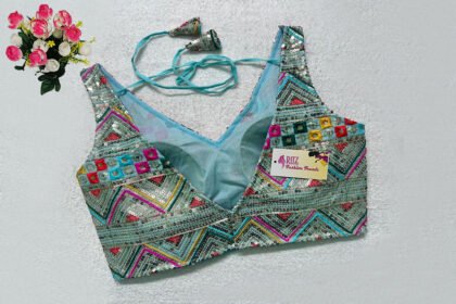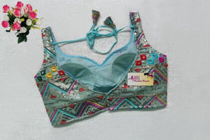 Sky Blue Multi Color Georgette Embroidered Blouse