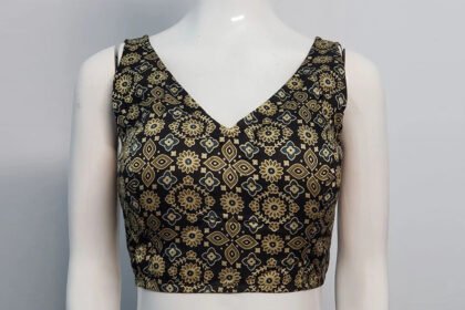 Black Multi Color Ajrakh Printed Modal Silk Blouse