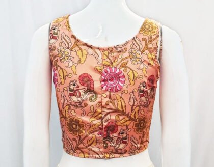 Peach Multi Color Litchi Silk Blouse