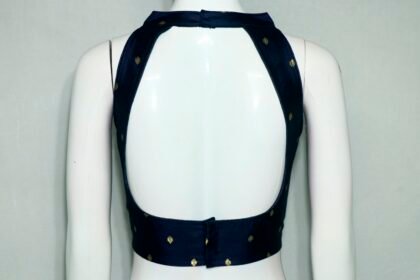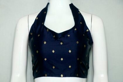 Navy Blue Color Taffeta Silk Blouse