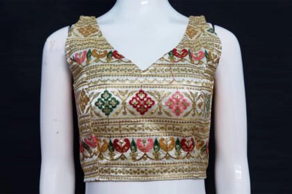 Off-White Multi Color Raw Silk Embroidered Blouse