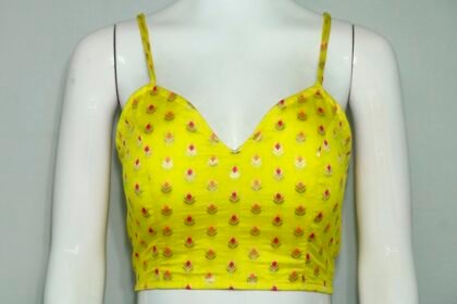 Lemon Yellow Multi Color Chanderi Silk Spaghetti