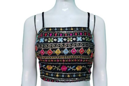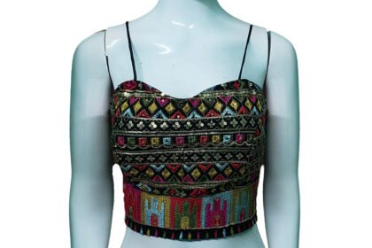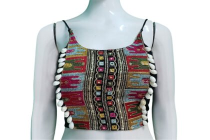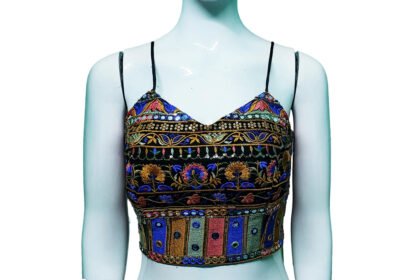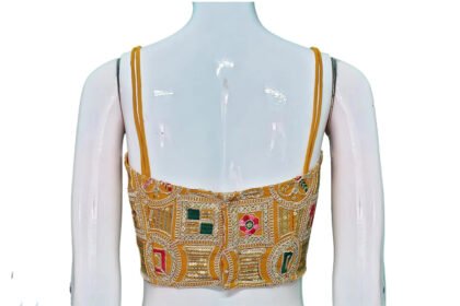 Yellow Ochre Multi Color Embroidered Spaghetti