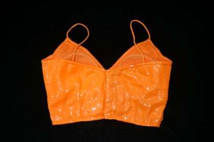 Bright Orange Color Sequin Spaghetti