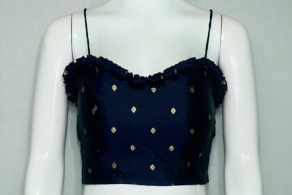 Navy Blue Color Taffeta Silk Spaghetti