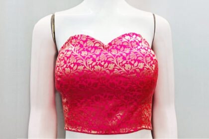 Hot Pink Color Brocade Strapless Blouse