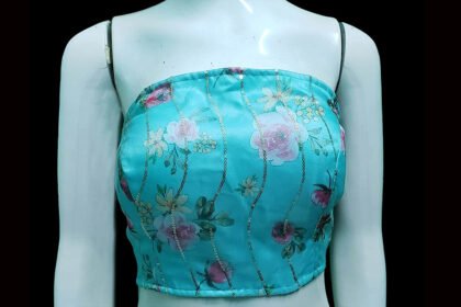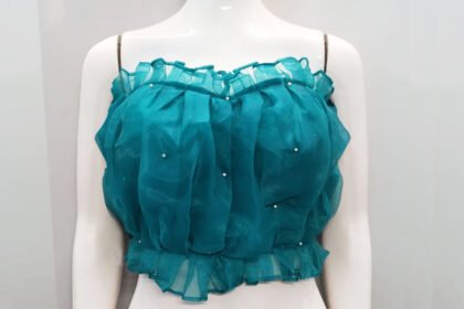Turquoise Blue Organza Strapless Blouse