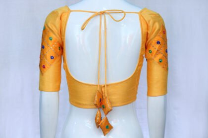 Black & Red Color Raw Silk Blouse With Kantha Stitch Embroidery