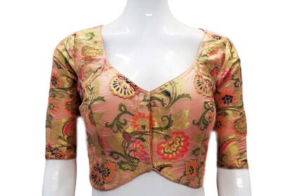 Peach Multi Color Meena Kari Brocade Blouse