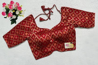 Royal Blue Color Meena Kari Brocade Elastic Ease Blouse