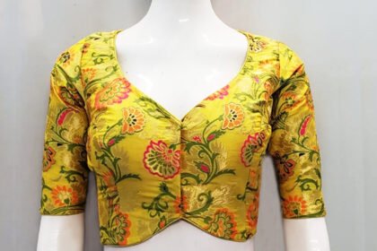 Lemon Yellow Multi Color Meena Kari Brocade Blouse