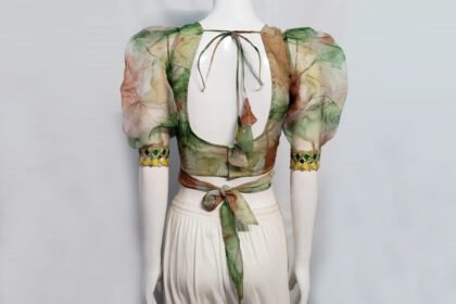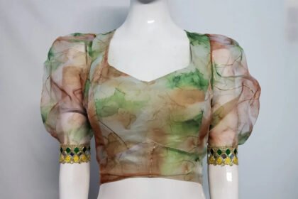 Green Multi Color Organza Blouse
