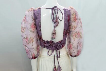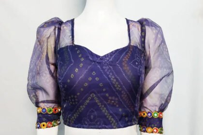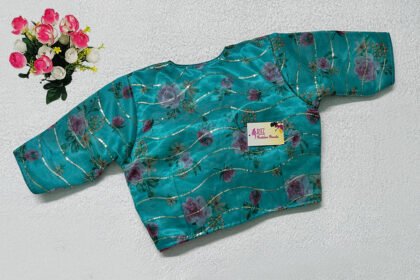 Blue Color Organza Printed Blouse