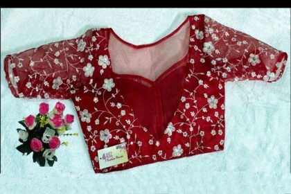 Red Color Embroidered Organza Blouse