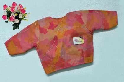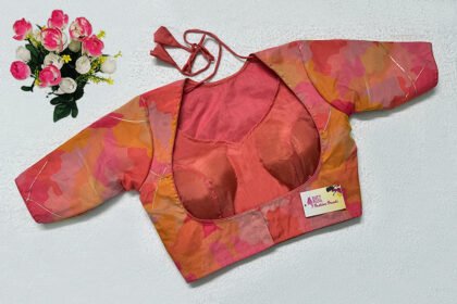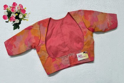 Orange Multi Color Samo Silk With Organza Jacket Blouse