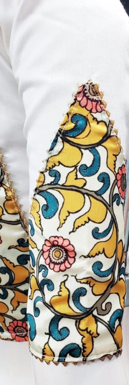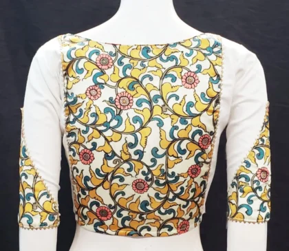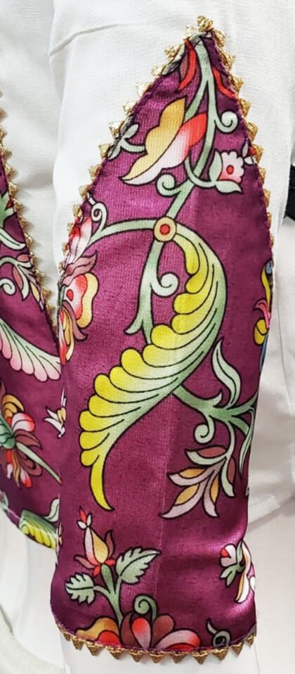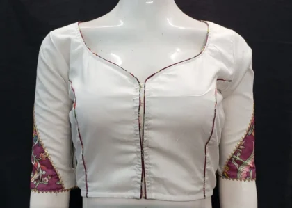 White Multi Color Litchi Silk Blouse