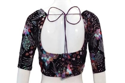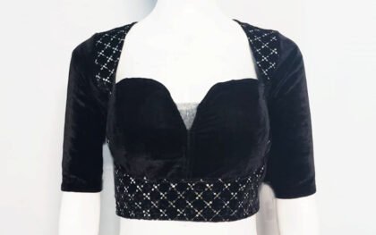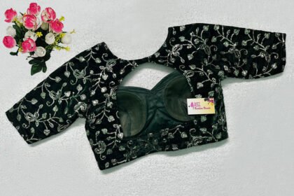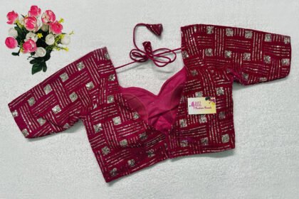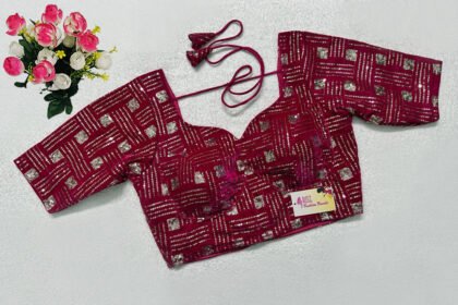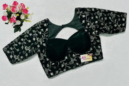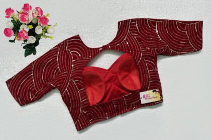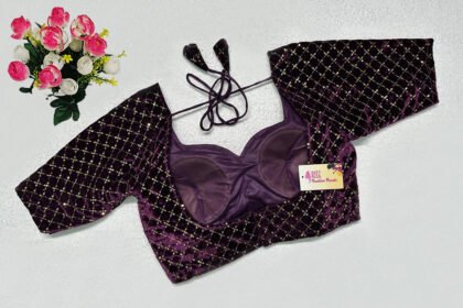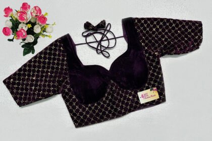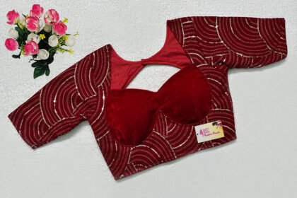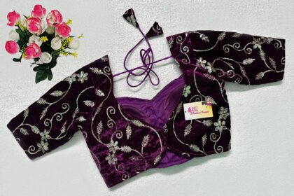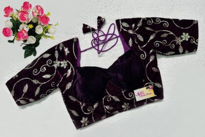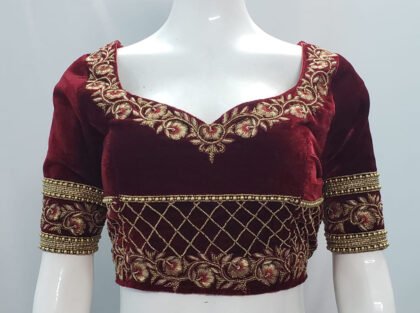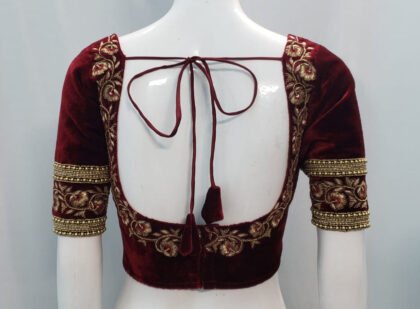 Wine Multi Color Velvet Heavy Embroidered Blouse