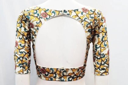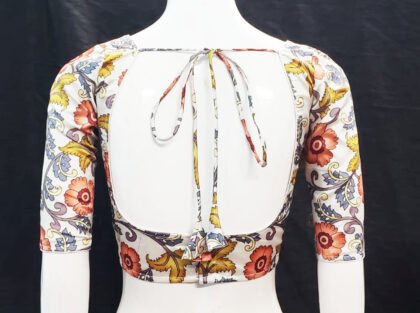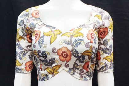 White Multi Color Litchi Silk Blouse