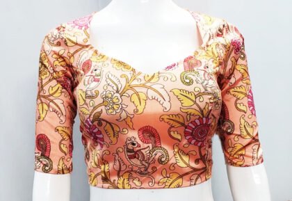 Peach Multi Color Printed Litchi Silk Blouse