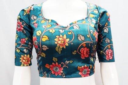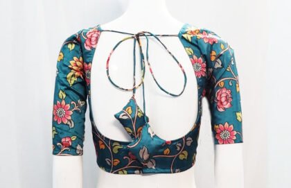 Pine Green Multi Color Litchi Silk Blouse