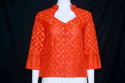 Salamander Orange Color Jamdani Jacket Blouse
