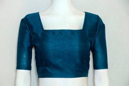 Turquoise Blue Color Raw Silk Blouse