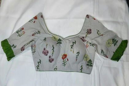 Navy Blue Color Cotton Ikkat Printed Blouse