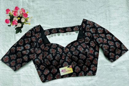 Black Multi Color Modal Silk Ajrakh Print Blouse