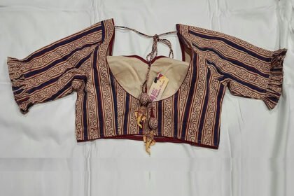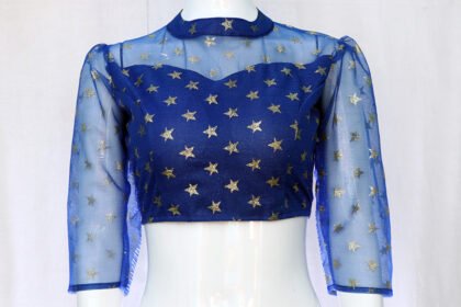 Navy Blue Color Cotton Ikkat Printed Blouse