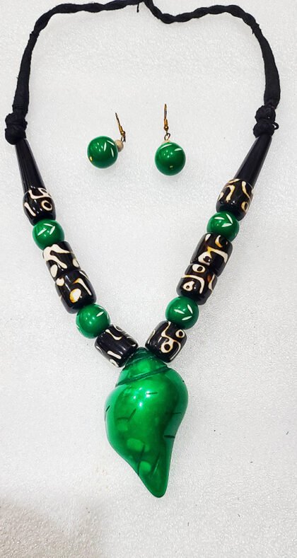 Forest Green and Midnight Black Wonderful Classy Stone Beads Necklace Set