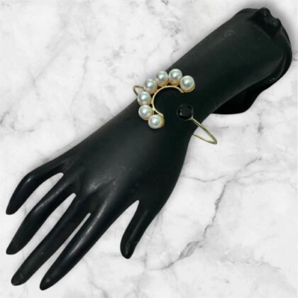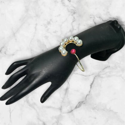 Gold Plated Hand Cuff With Pearl & Beads