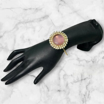 Peach Studded Stone Bracelet With Beads