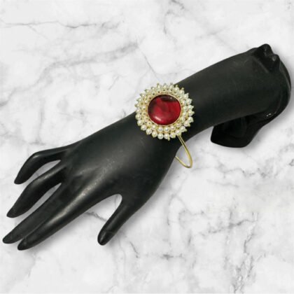 Gold Plated Hand Cuff With Stone & Beads