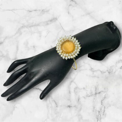 Yellow Studded Stone Bracelet With Beads