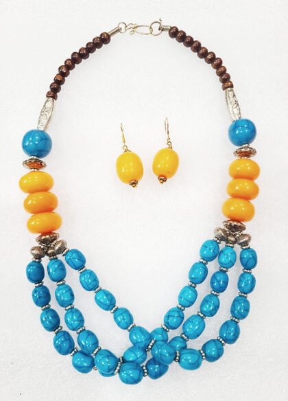 Cerulean Blue and Dandelion Yellow Color Wonderful Classy Three Layer Beads Necklace
