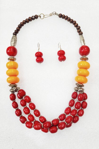 Ruby Red and Dandelion Yellow Color Wonderful Classy Three Layer Beads Necklace