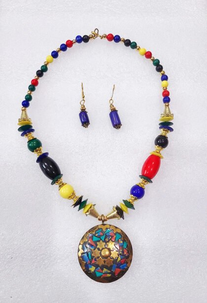 Multicolor Wonderful Classy Stone Beads Necklace with Nice Round Pendant