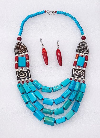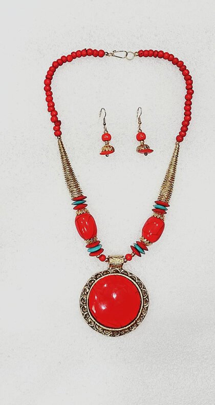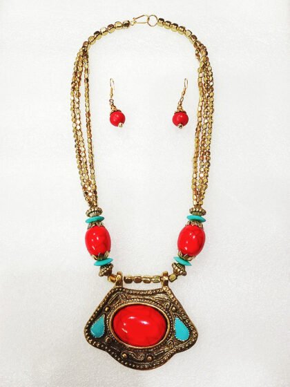 Crimson Red and Arctic Blue Color Wonderful Classy Beads with Gold Plated Necklace Set