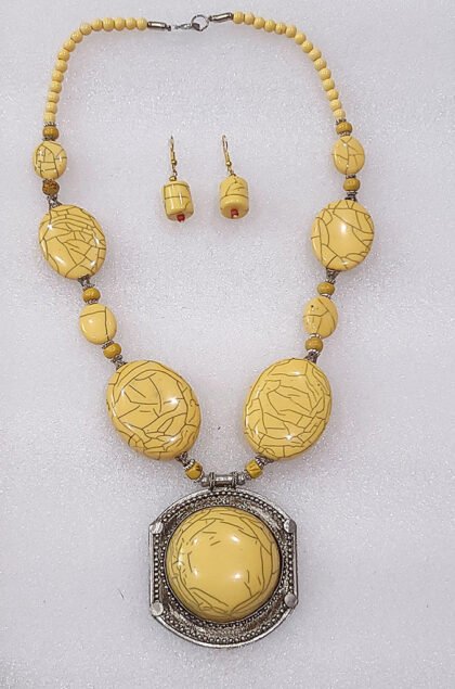 Banana Yellow color Wonderful Classy Beads Necklace Set with Round Pendant