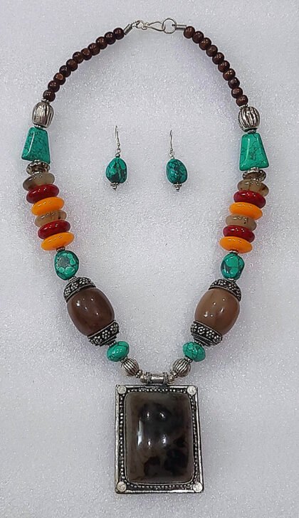 Multicolor Wonderful Classy Stone Beads Necklace Set with Square Pendant