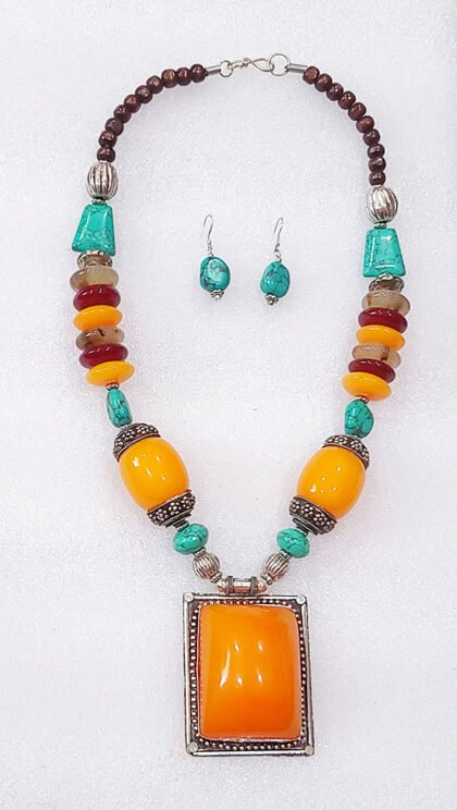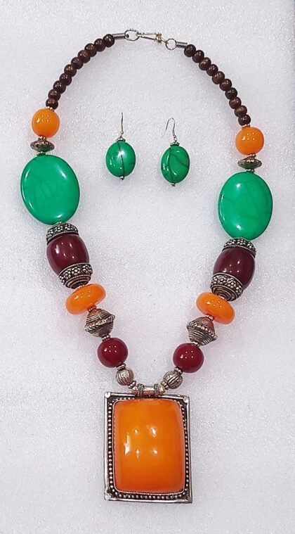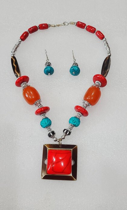 Multicolor Wonderful Classy Stone Beads Necklace Set With Square Pendant