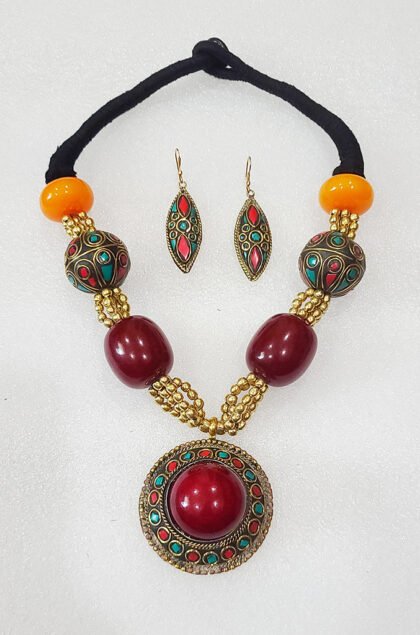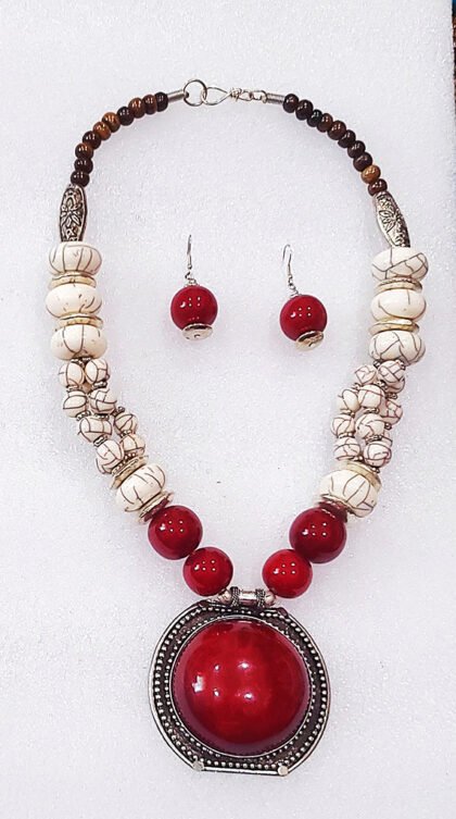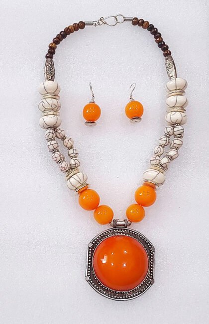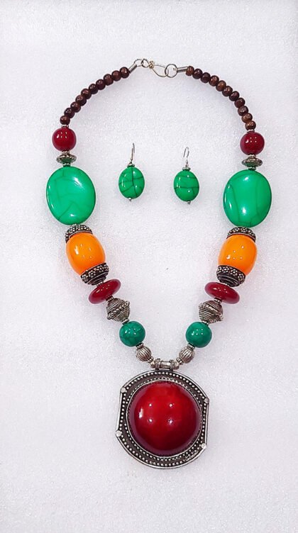 Multicolor Wonderful Classy Stone Beads Necklace Set with Round Pendant
