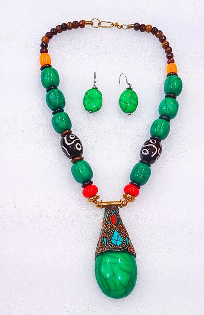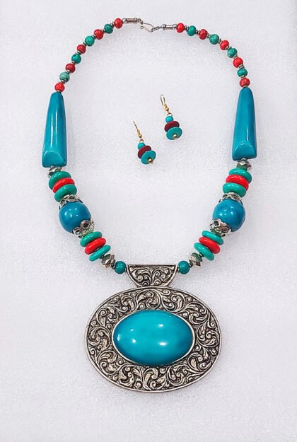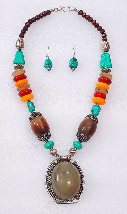 Multicolor Wonderful Classy Stone Beads Necklace Set with Nice Pendulum Pendant