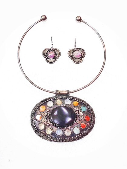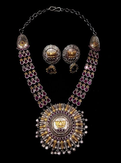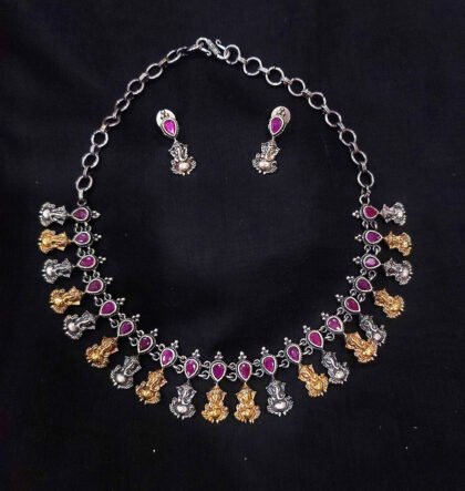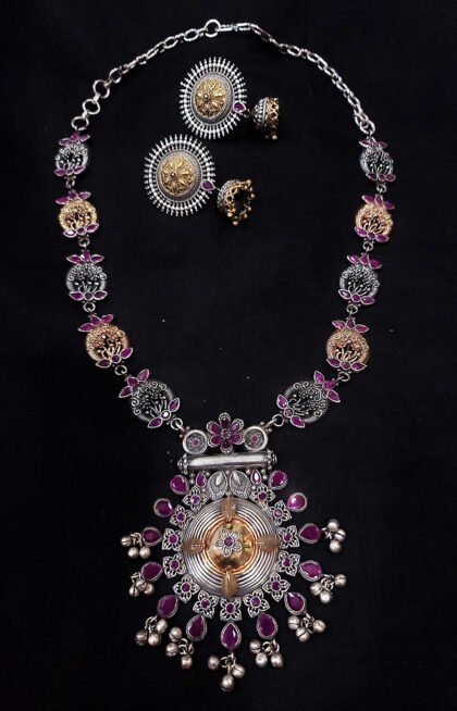 Royalty in This Exquisite Double Tone with Silver Plated Enamel Necklace Set
