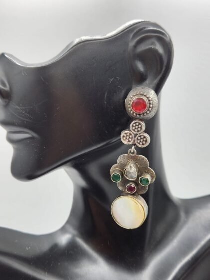Ruby Red with Multicolor Wonderful Classy Stone Beads Necklace Set with Double tone Pendant