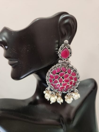 Pink Stone German Silver Ear-Ring